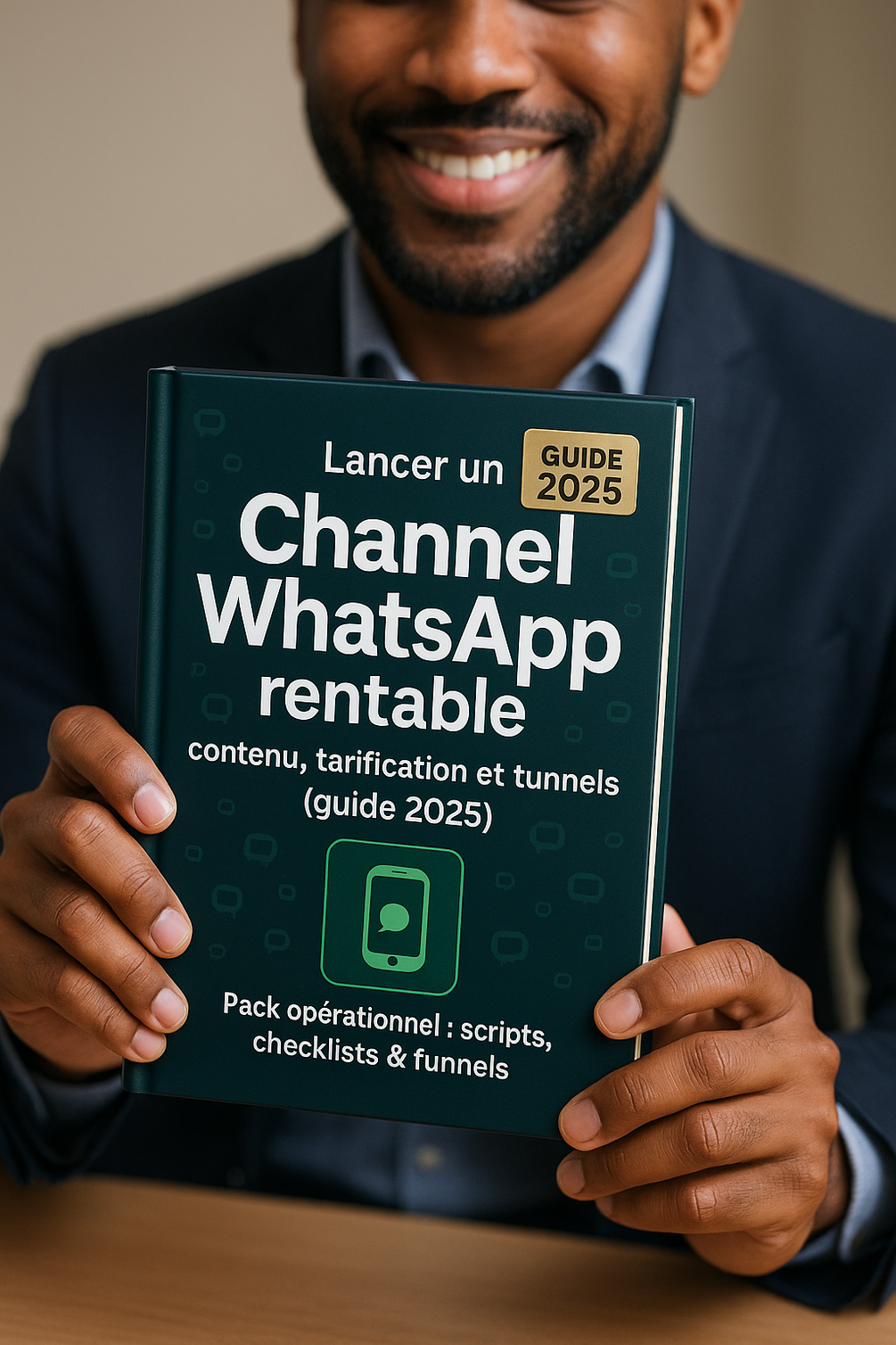 Une méthode pas à pas : de la promesse au tunnel complet (attirer → convertir → activer → monétiser → fidéliser). Grilles de tarification 2025 (grand public et B2B), avec repères mensuel/annuel/VIP. 20 scripts WhatsApp (invitation, onboarding, offre Premium, VIP, winback). 30 messages prêts à poster + modèles (astuce, tuto 1-2-3, preuve sociale, sondage, offre douce). Calendrier éditorial 30 jours et plan d’action 14 jours. Checklists imprimables : lancement, charte éditoriale, offre, onboarding, mesure hebdo. Études de cas par secteur (cuisine, coaching/business, commerce local, ONG). Prompts IA pour accélérer la rédaction sans perdre le ton pro.